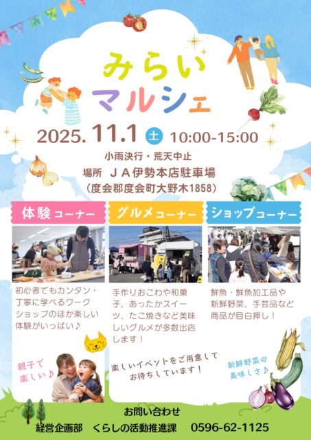 JA伊勢 経営企画部 くらしの活動推進課まで TEL: 0596-62-1125